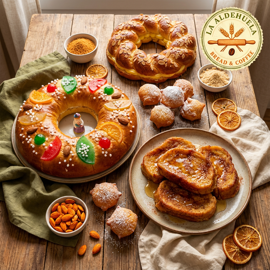 Celebramos cada época del año con especialidades tradicionales: roscón de Reyes, torrijas, huesos de santo y otros clásicos que marcan el calendario de la buena mesa.